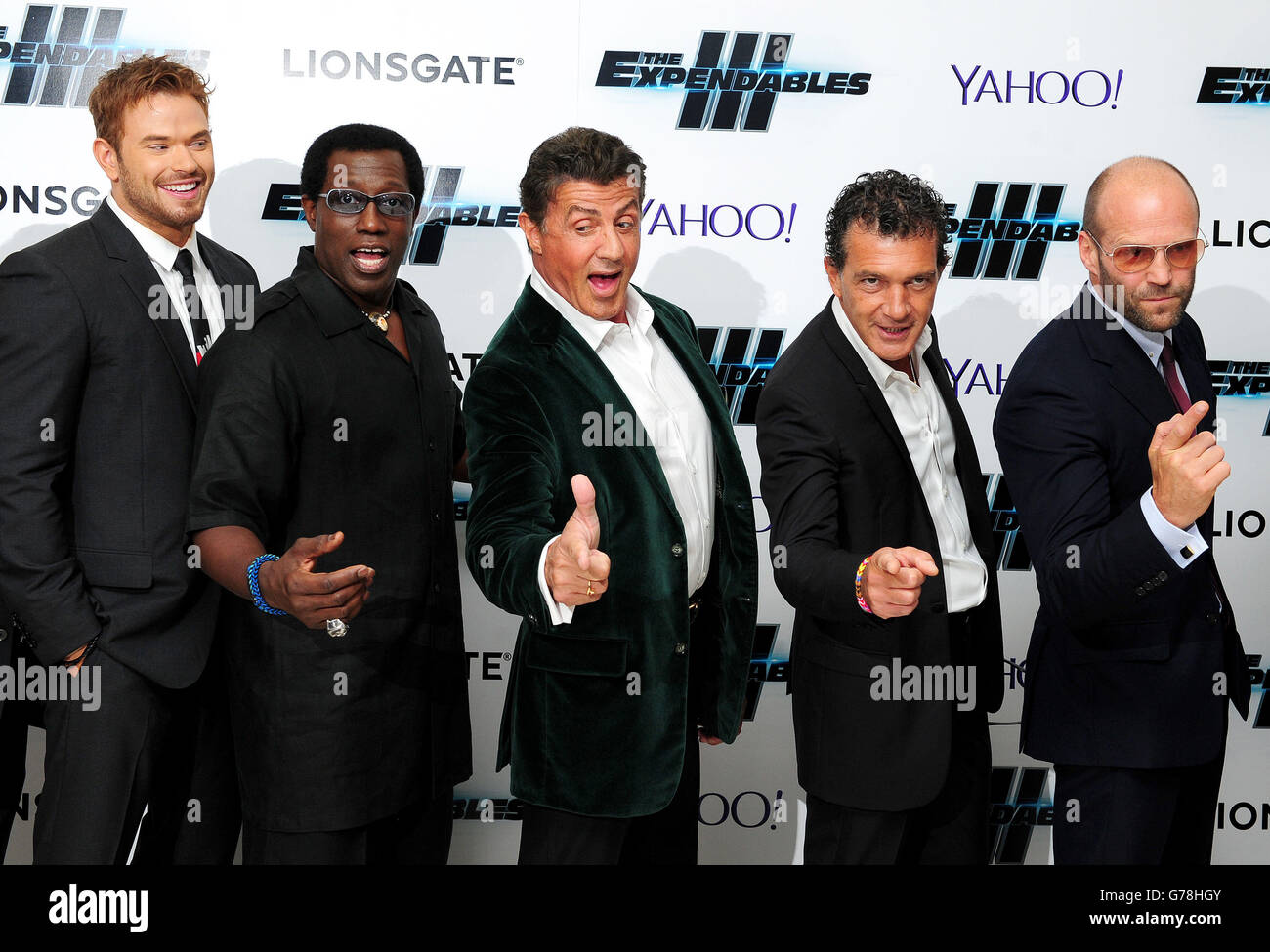 Kellan Lutz Wesley Snipes Sylvester Stallone Antonio Banderas And Jason Statham Attending The Premiere Of New Film The Expendables Iii At The Odeon Cinema In London Stock Photo Alamy
