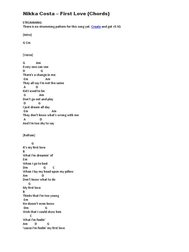 First Love Nikka Costa Fingerstyle Guitar Tutorial Tab Chords Lyrics Chords Chordify