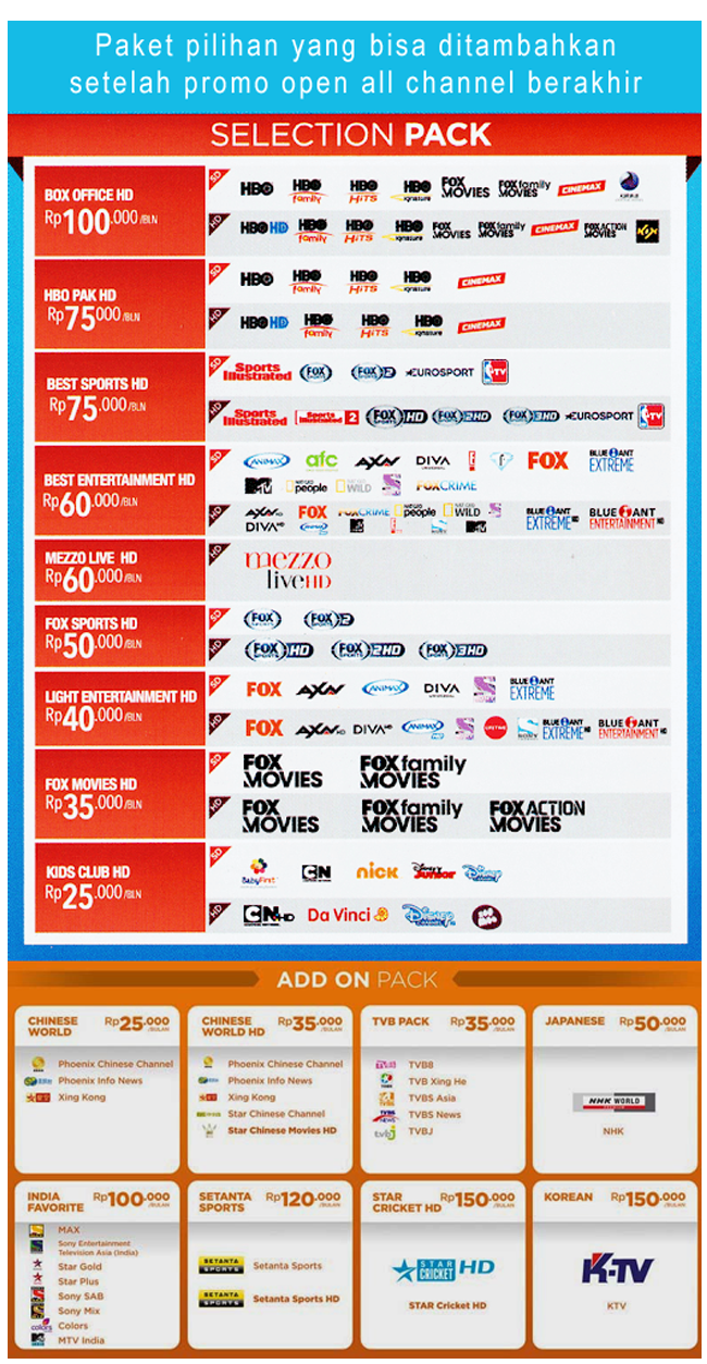 Paket First Media Tambahan Selection Pack Add On Berlangganan First Media