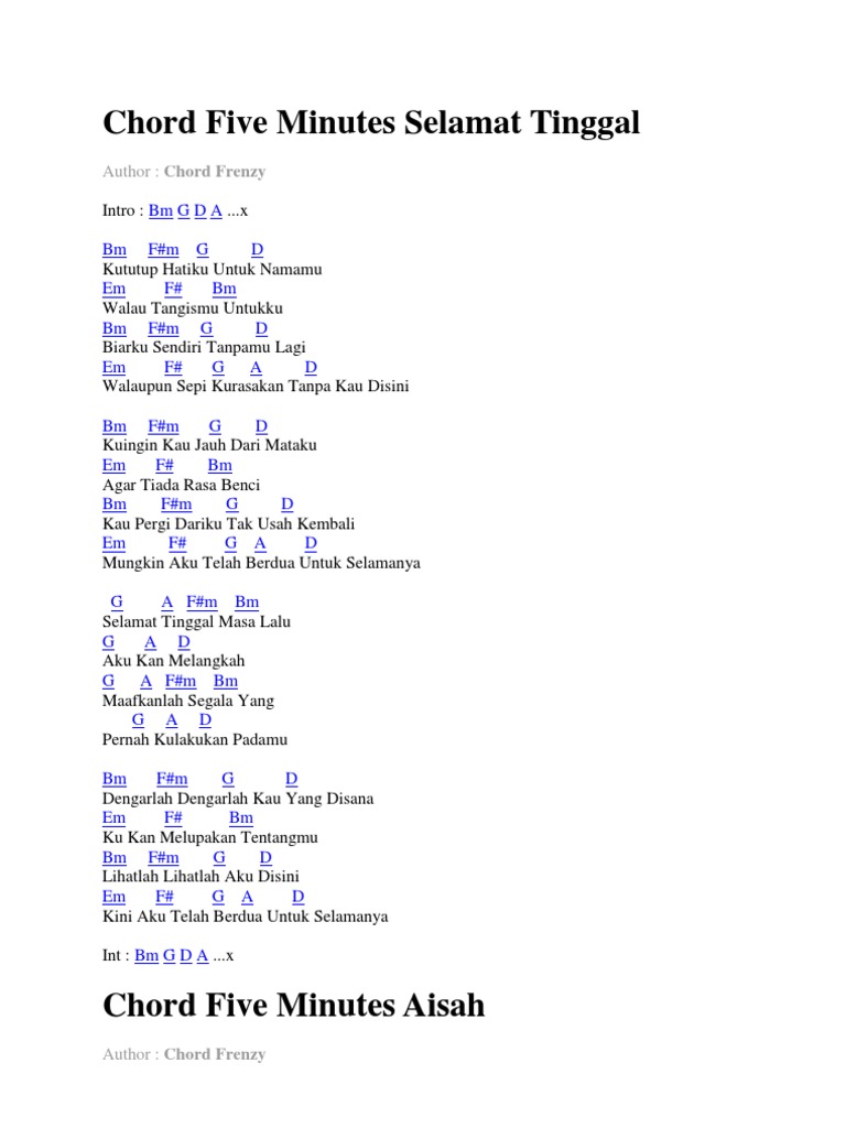 Lirik Dan Kunci Gitar Five Minutes Selamat Tinggal Pop And Rock Songs