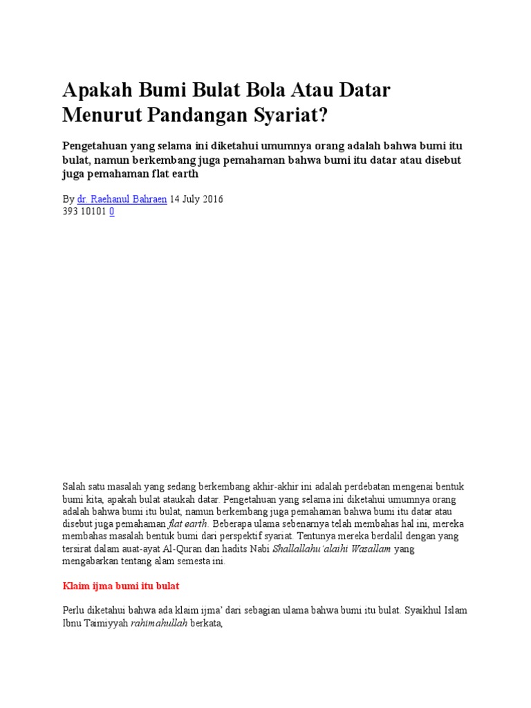 Pdf Keruntuhan Teori Flat Earth Menurut Filsafat Islam Dan Al Quran