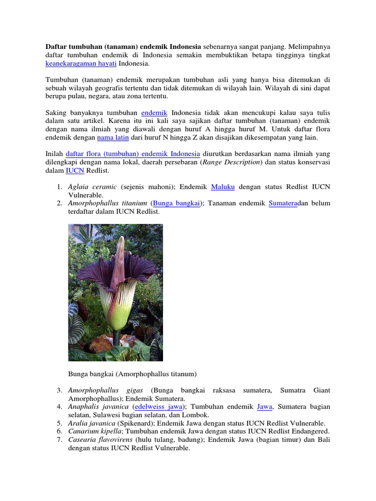 A Z Flora Tumbuhan Endemik Indonesia Lengkap