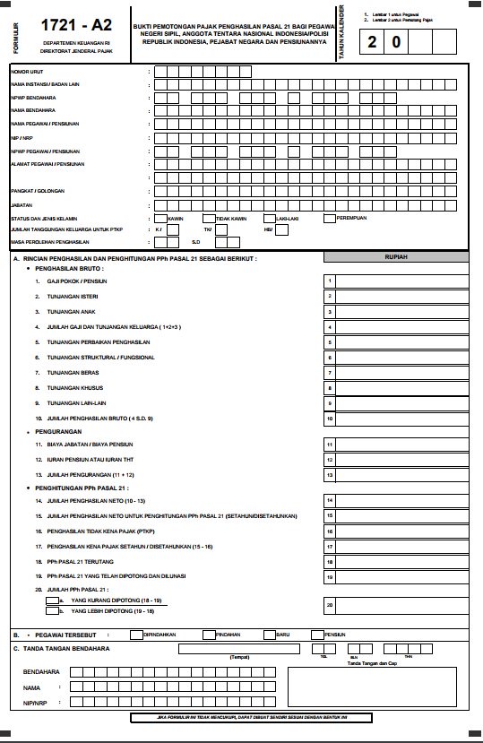 Indonesian Personal Income Tax Pph21 And Withholding Certificate A1 Form For Tax Return Ããã©ãã¤ã·ã¹ãã