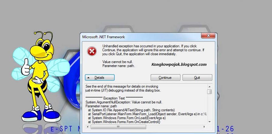 Tidak Bisa Print Create Csv E Spt Pph 21 Pph 22 Pph 23 Dan Pph 4 2 Unhandled Exception Has Occured In Your Application Kawan Pajak