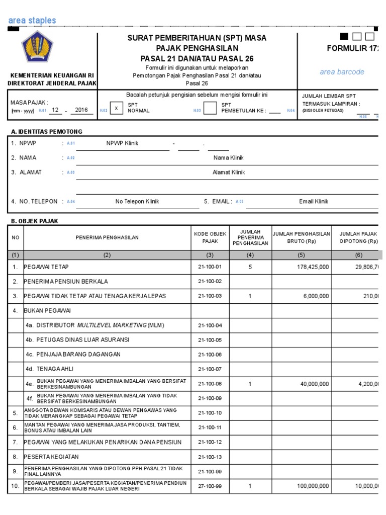 Contoh Pengisian Bukti Potong Pph 21 Tidak Final