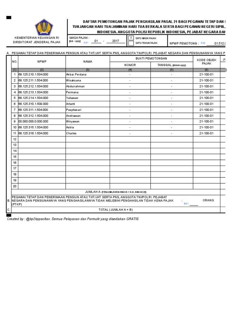Formulir 1721 A1 Excel Ini Contoh Dan Cara Download