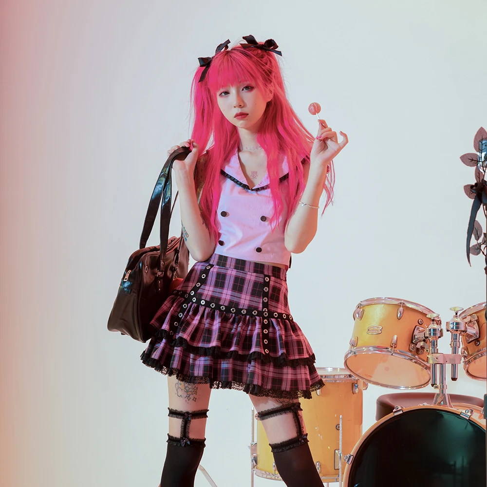 Japanese Design Pink Plaid Skirt Hot Girl Punk Sweet Lolita Kawaii Cake Mini Skirt School Student 2021 Y2k Summer Skirts Jupe Skirts Aliexpress