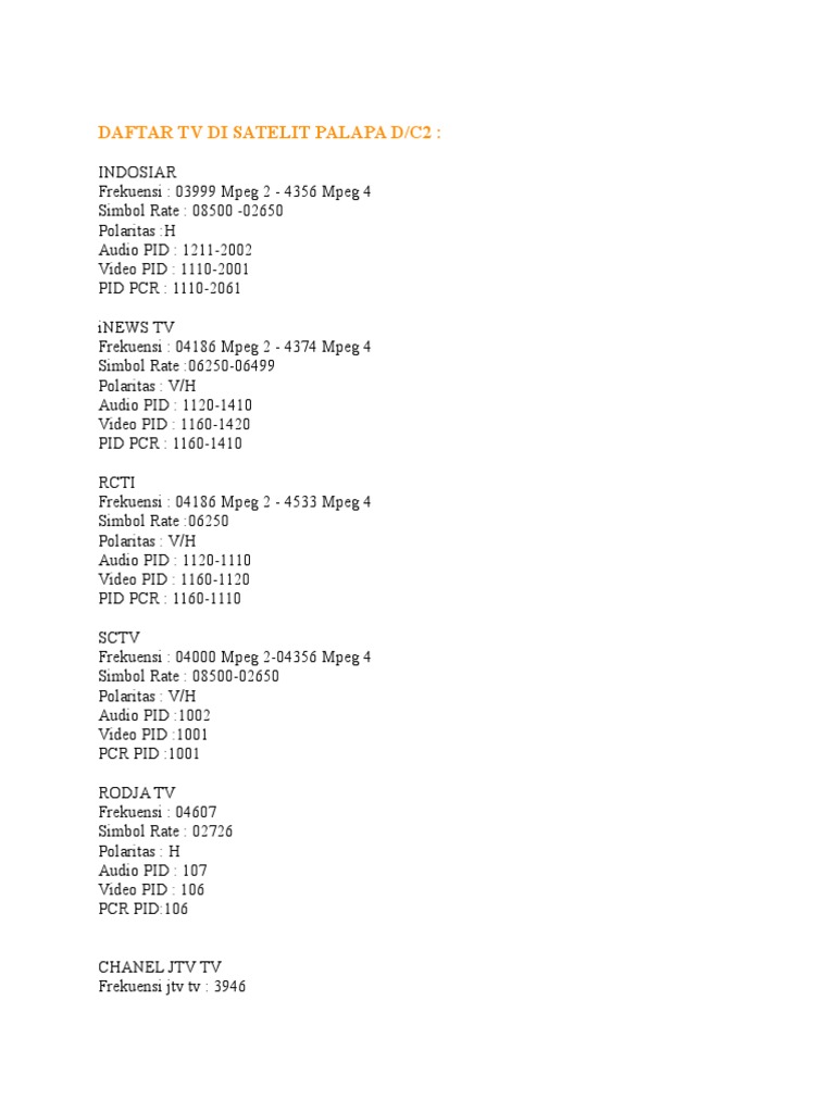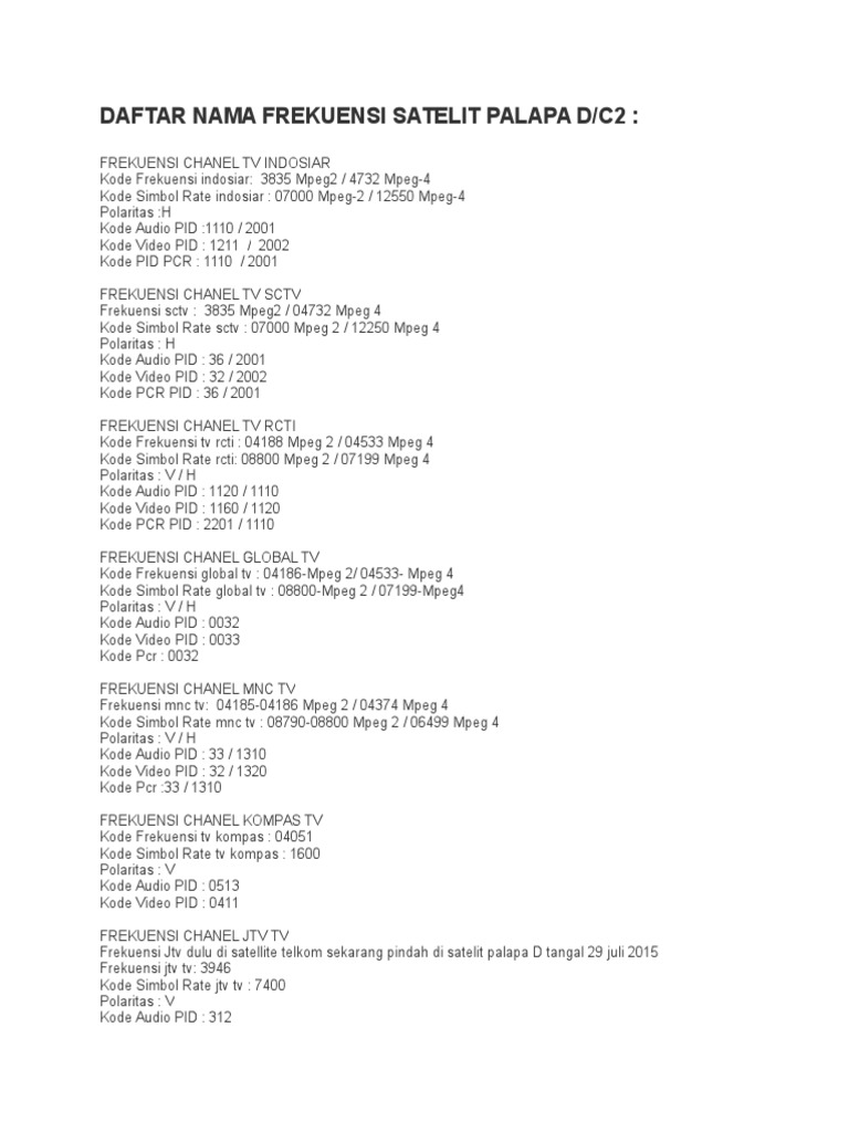 Inilah Daftar Frekuensi Parabola Pada Satelit Palapa D 2020 Satelit Mania Blog Satelit Parabola Indonesia