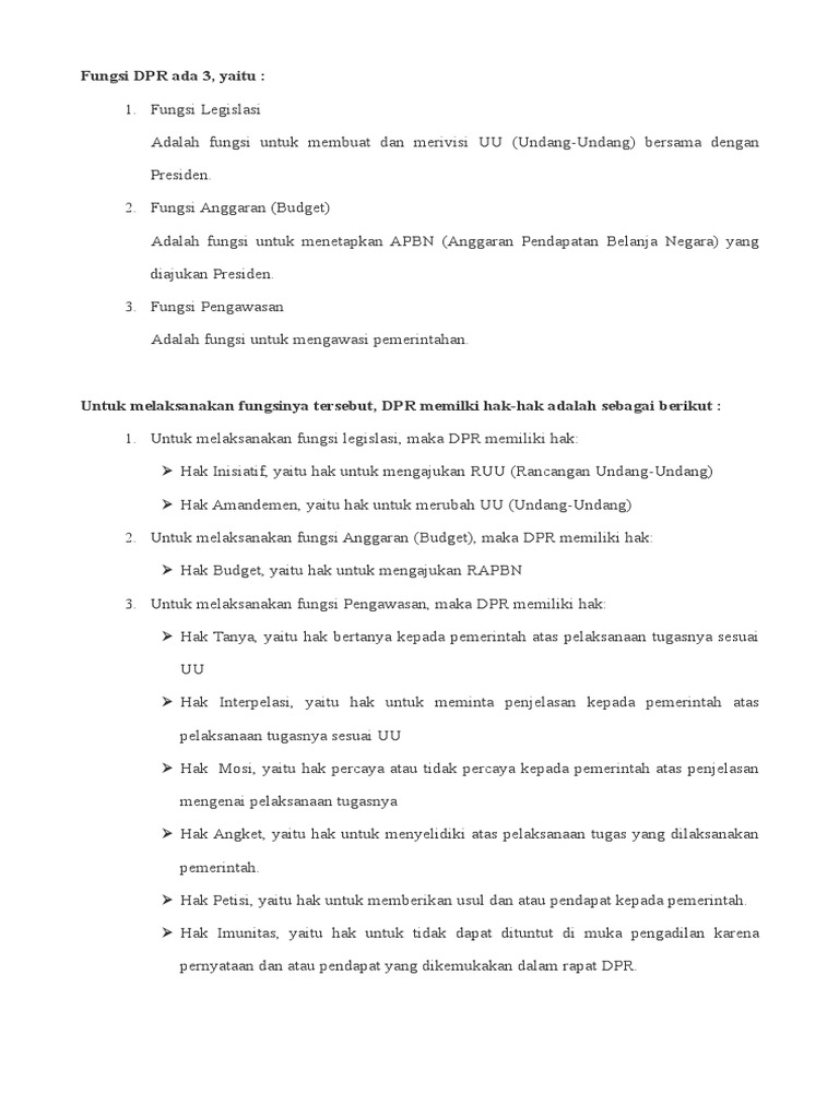 Tugas Dan Wewenang Dpr Fungsi Legislasi Anggaran Dan Pengawasan