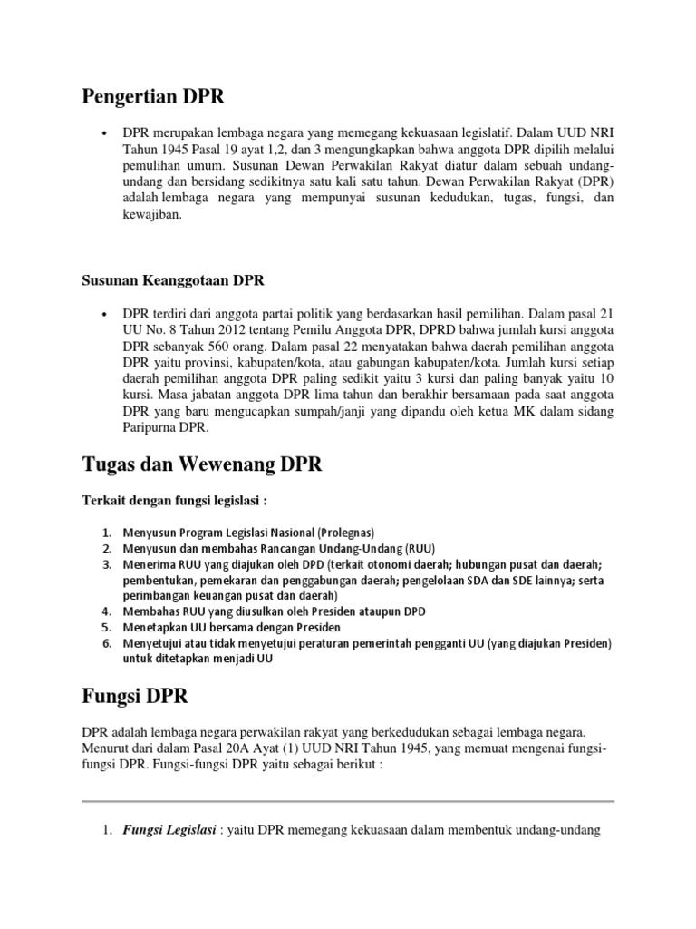 Tugas Fungsi Dpr Undang Undang Soal Tes Cpns Asn Tes Wawasan Kebangsaan Twk Bahassoalcpns