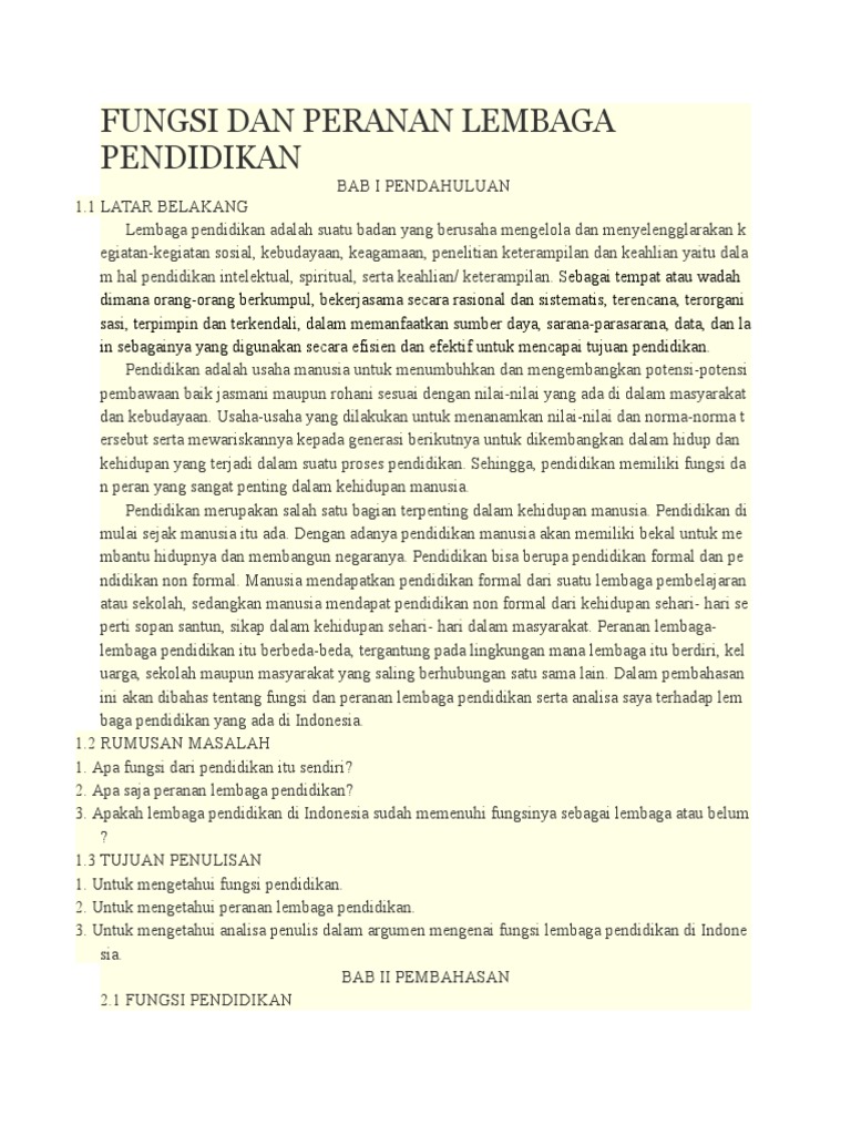 Tugas Pokok Dan Fungsi Lembaga Pendidikan Makalah Pdfcoffee Com