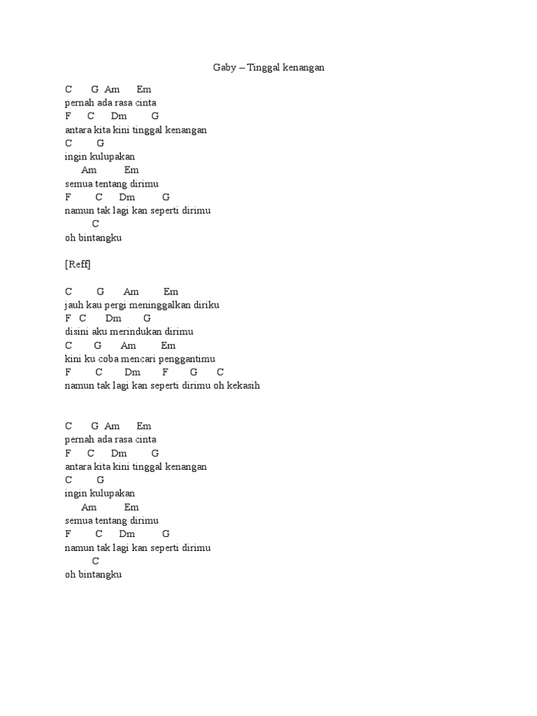 Chord Dan Lirik Lagu Tinggal Kenangan Gaby Kunci Gitar Dari C Jauh Kau Pergi Meninggalkan Diriku Tribunmanado Co Id
