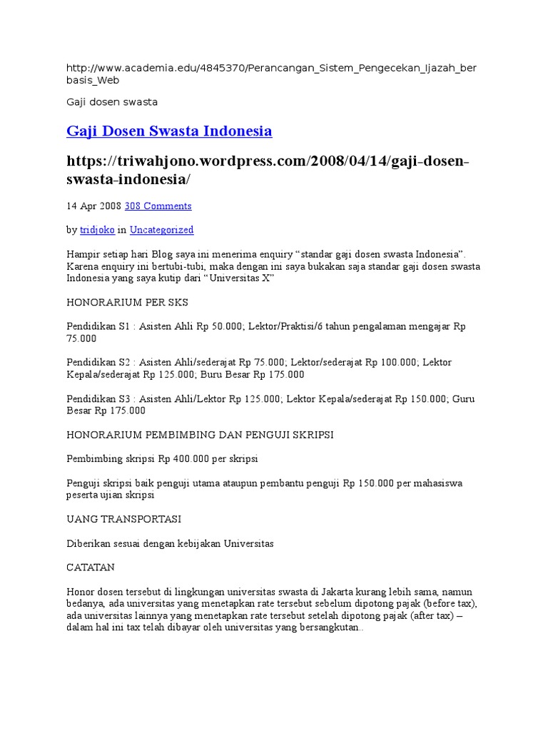 Gaji Sertifikasi Dosen Swasta Abdu Blogs
