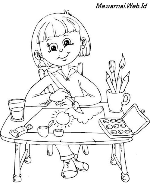 Gambar Mewarnai Anak Anak Sedang Belajar Dunia Mewarnai