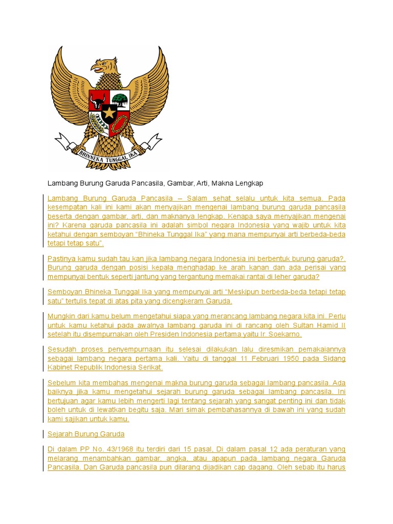 Garuda Pancasila Ini Informasi Sejarah Lengkapnya