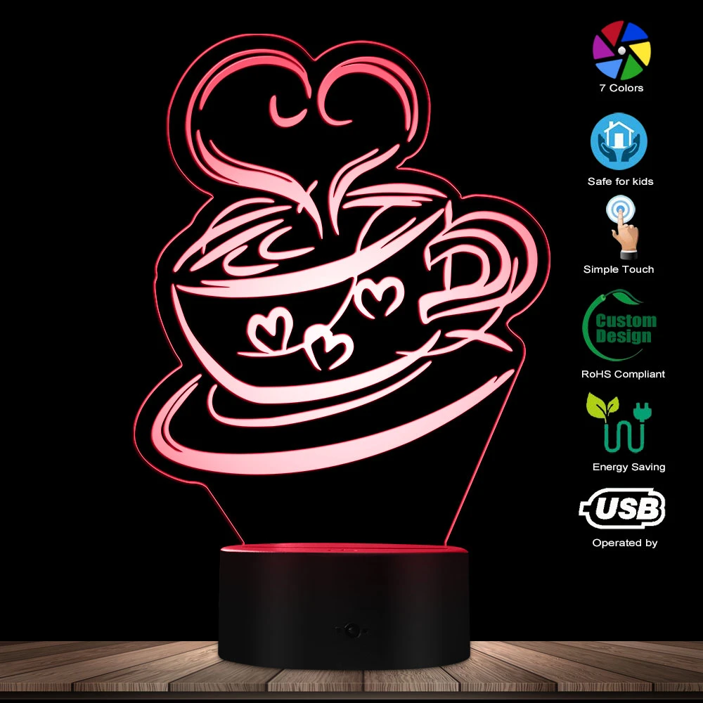 Cangkir Kopi 3d Ilusi Optik Malam Lampu Baru Led Malam Lampu Touch Kontrol Akrilik Gift 7 Warna Perubahan Meja Dekorasi Novelty Lamp Novelty Ledled Novelty Aliexpress