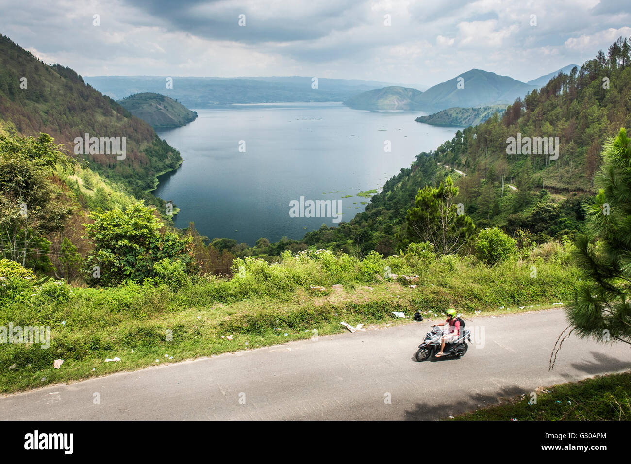 Tourist Exploring Lake Toba Danau Toba By Motorcycle North Sumatra Indonesia Southeast Asia Asia Stock Photo Alamy