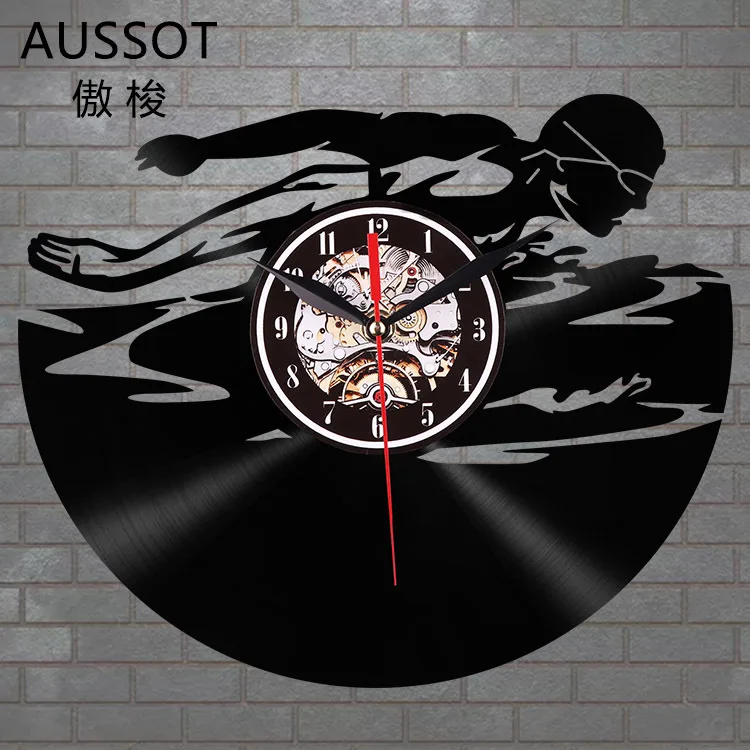 Kreatif Gramophone Record Menggantung Clock Renang Gerak 3d Vintage Clock Living Room Dekorasi Led Quartz Wall Clock Wall Clocks Aliexpress