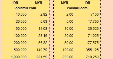 Tukaran Wang Rupiah Ke Ringgit 1 Idr 0 000285 Myr
