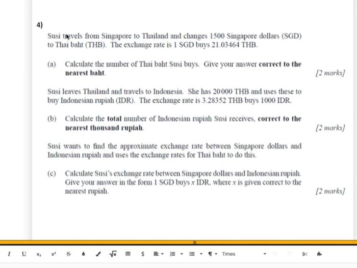 Solved 4 Susi Tevels From Singapore To Thailand And Changes Chegg Com