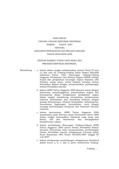 Rancangan Undang Undang Ri Nomor 00 Tahun 2007 Tentang