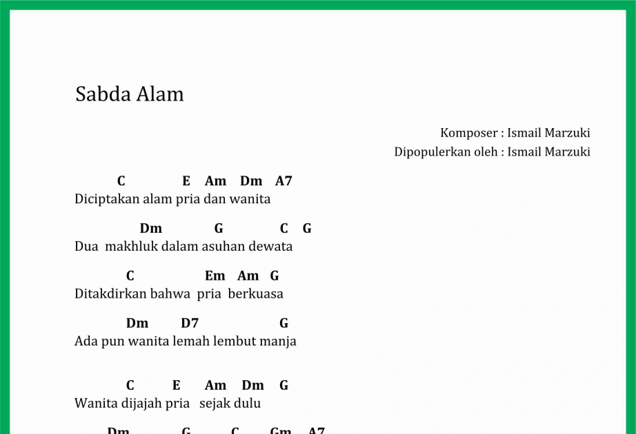 Chord Gitar Lirik Lagu Sabda Alam Ismail Marzuki Afyinfo