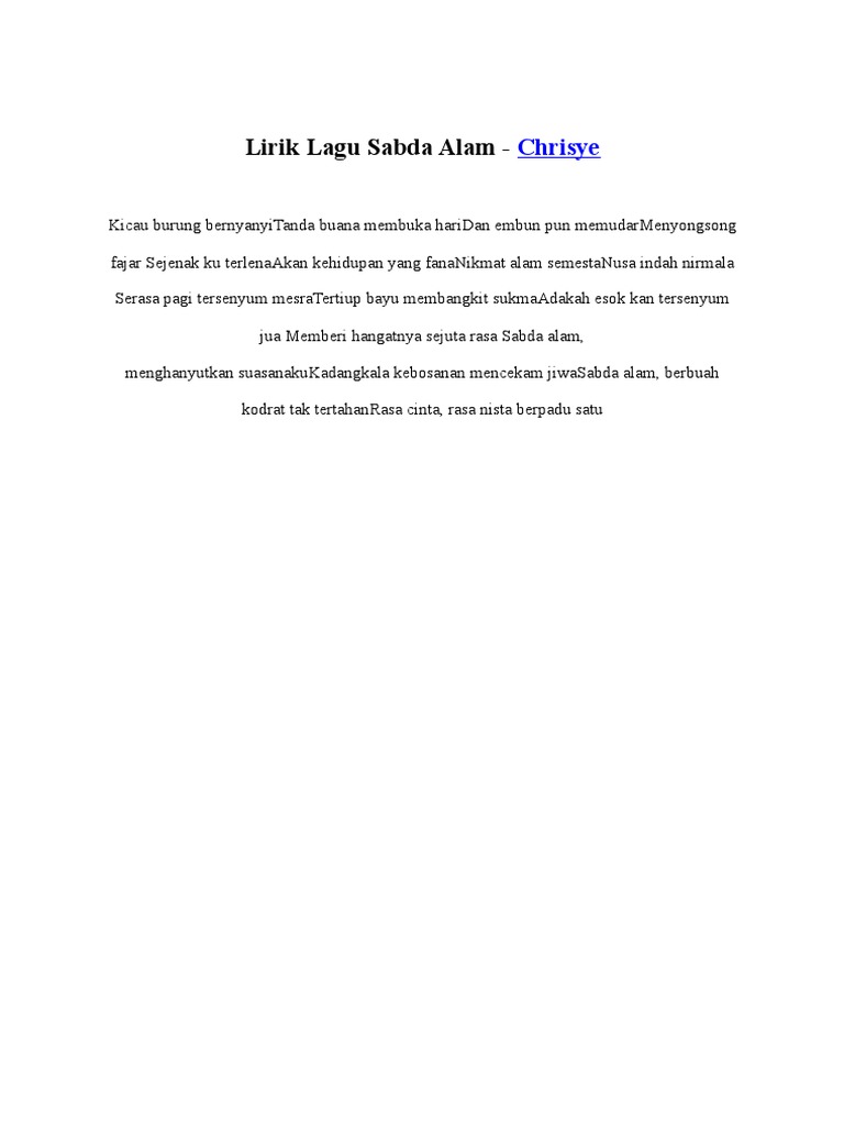 Download Lagu Sabda Alam Lirick Mp3 Video Gratis
