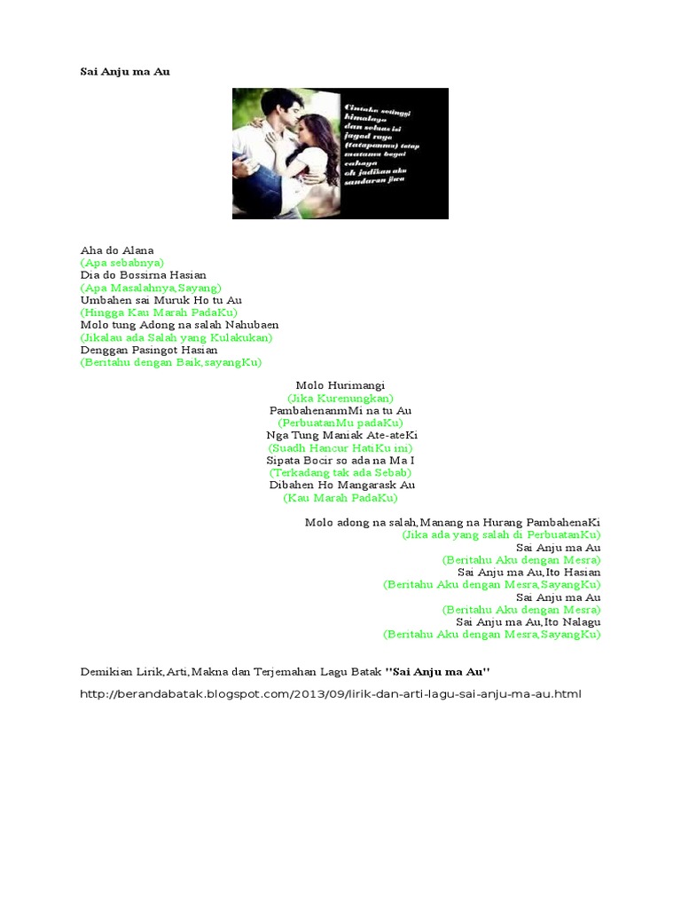 Teks Lagu Sai Anju Ma Au Dan Artinya Berbagai Teks Penting