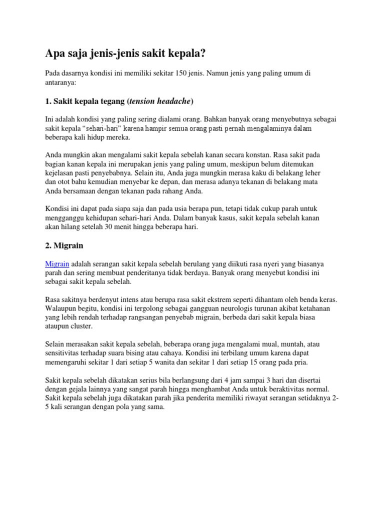 Penyebab Sakit Kepala Sebelah Kanan Citra Indonesia