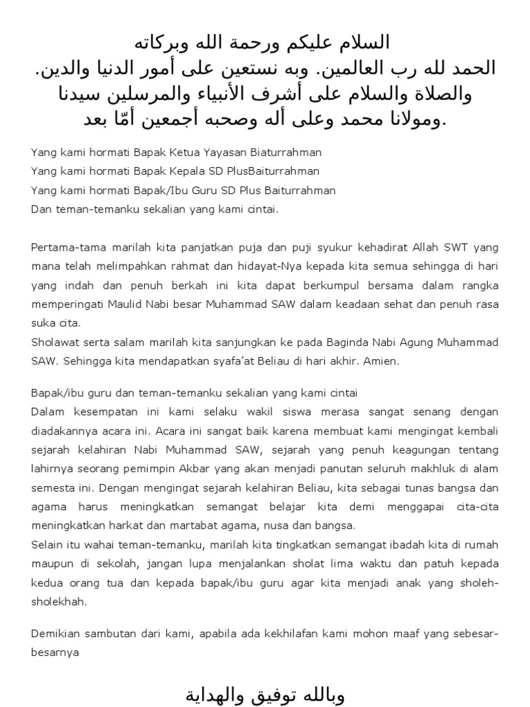 Teks Sambutan Ketua Panitia Maulid Nabi Berbagai Teks Penting