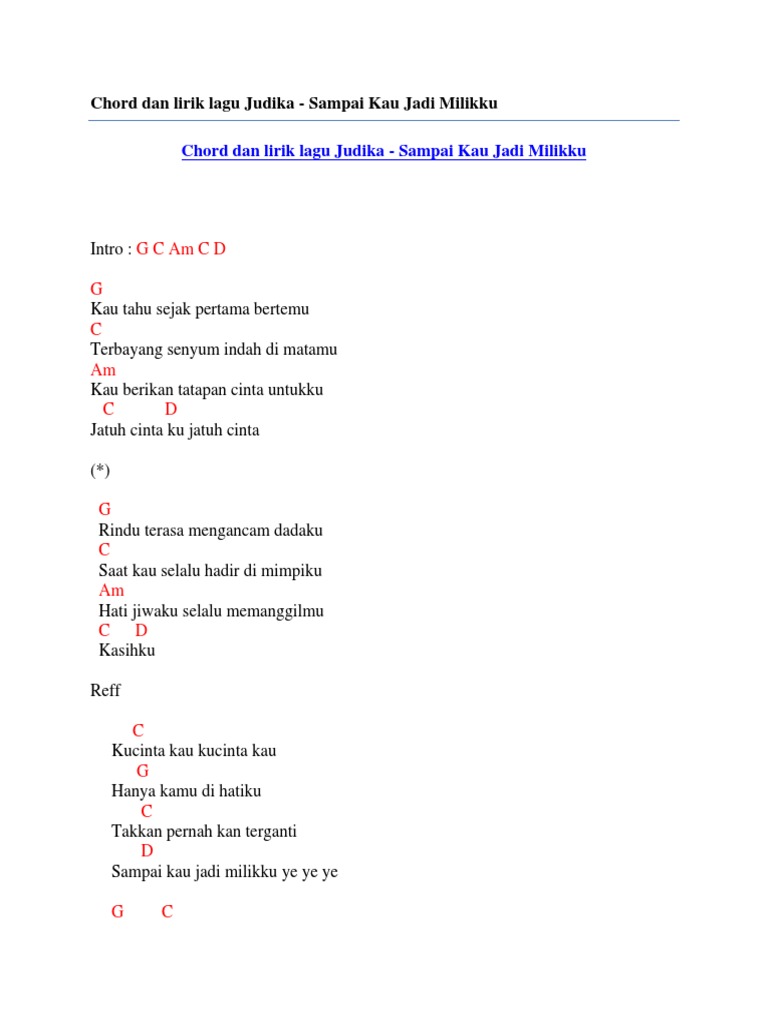Chord Dan Lirik Lagu Judika Sampai Kau Jadi Milikku By Chord Zila Issuu