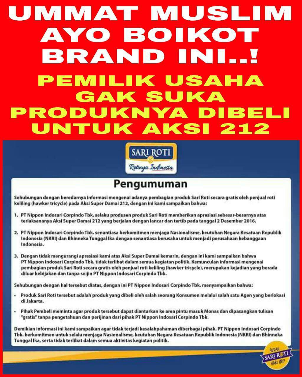 Indonesia Diboikot Jutaan Konsumen Muslim Sari Roti Hapus Pengumuman Blunder Soal Aksi 212 Berita Indonesia Hari Ini
