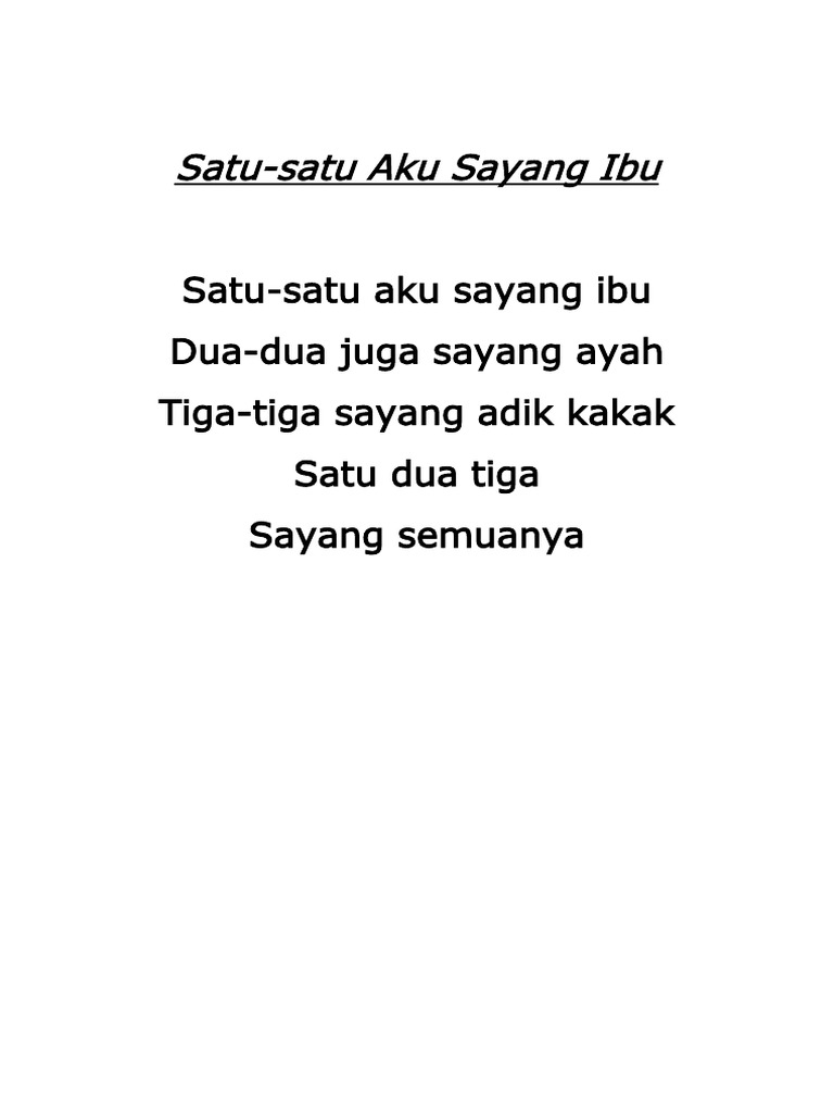 Satu Satu Aku Sayang Ibu Dua Dua Juga Sayang Ayah Tiga Tiga Sayang Adik Kakak Satu