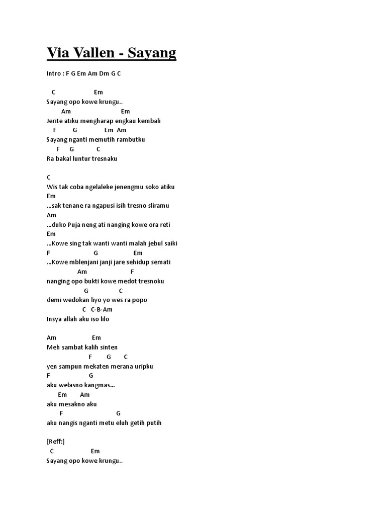All About Guitar Chords And Lyrics Kunci Gitar Via Valen Sayang