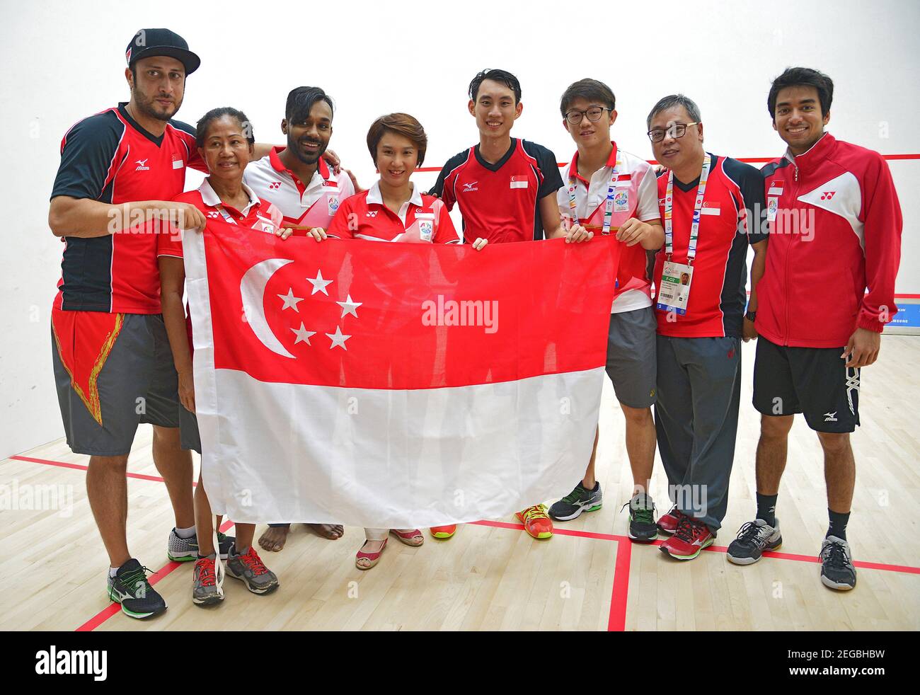 28th Sea Games Singapore 2015 Kallang Squash Centre Court Singapore 12 6 15 Squash Men S Team Preliminaries Singapore V Indonesia The Singapore Team Poses For A Photo With Low