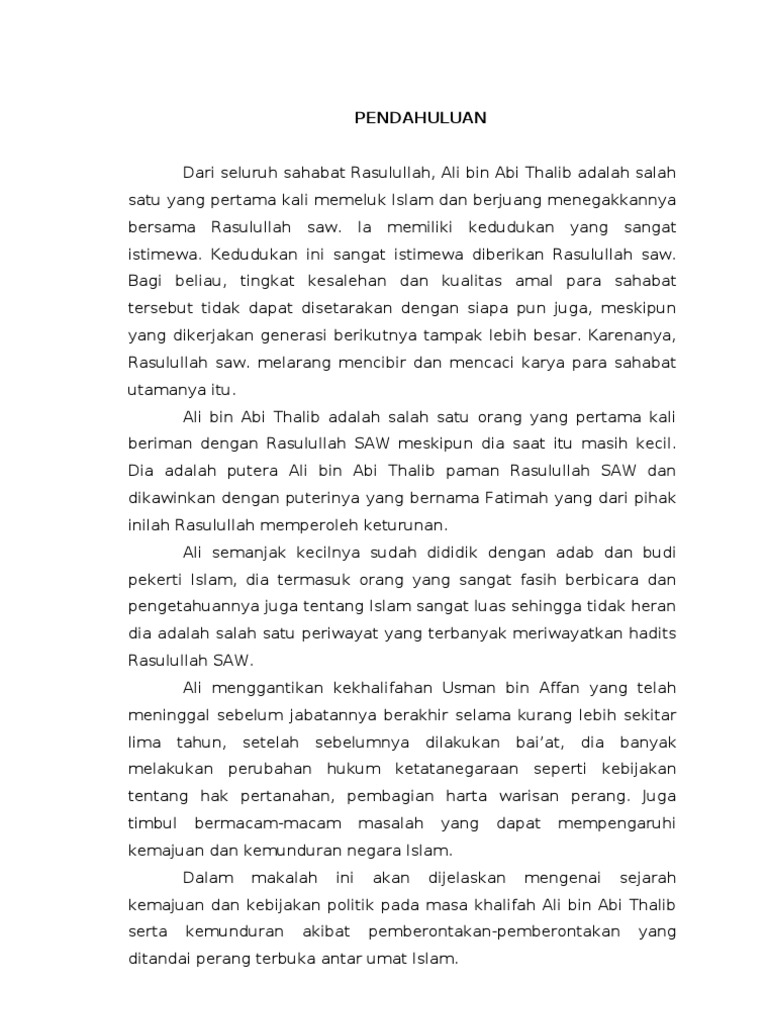 Makalah Sejarah Peradaban Islam Tentang Khalifah Ali Bin Abi Thalib