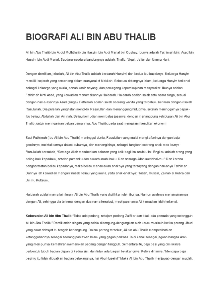 Biografi Ali Bin Abi Thalib Lengkap Dari Masa Kecil Hingga Menjadi Khalifah Islami Dot Co