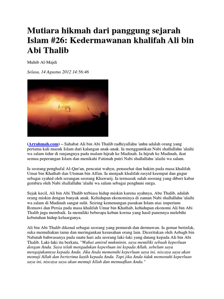 Sejarah Khalifah Lima Menit Bersama Ali Bin Abi Thalib Kantor Berita Mina