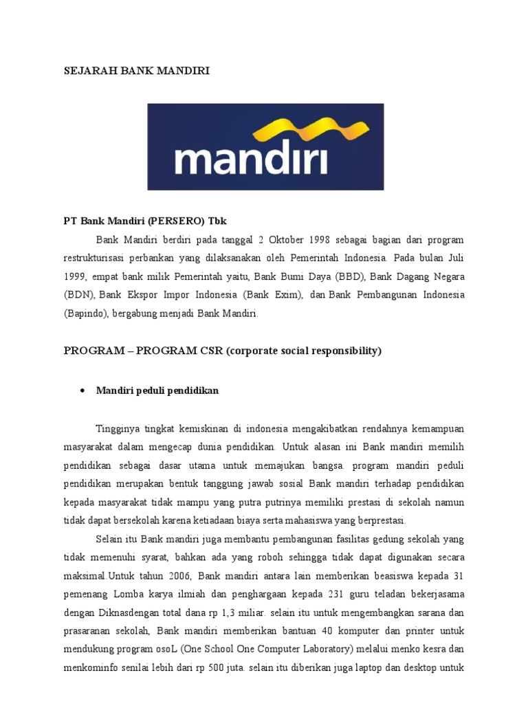 Randi Abdillah Sejarah Pt Bank Mandiri Persero Tbk