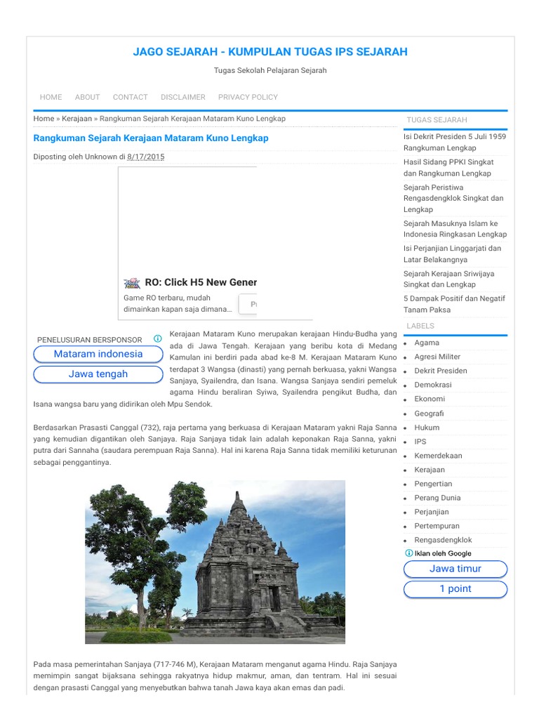 Kerajaan Mataram Kuno Sejarah Peninggalan Dsb Lengkap Serupa Id
