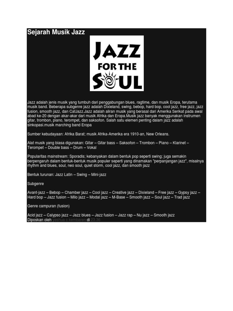 Ciri Ciri Musik Jazz Dan Sejarahnya Ridvan Maulana