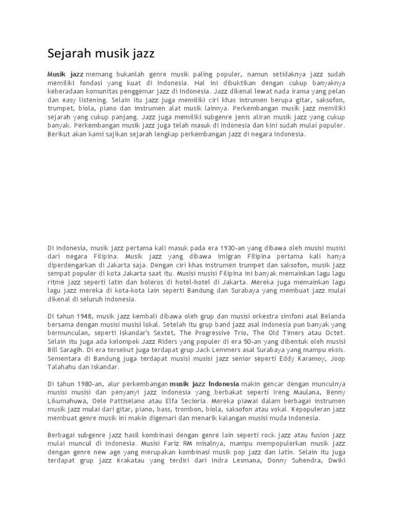 Sejarah Musik Jazz Sejarah Indonesia