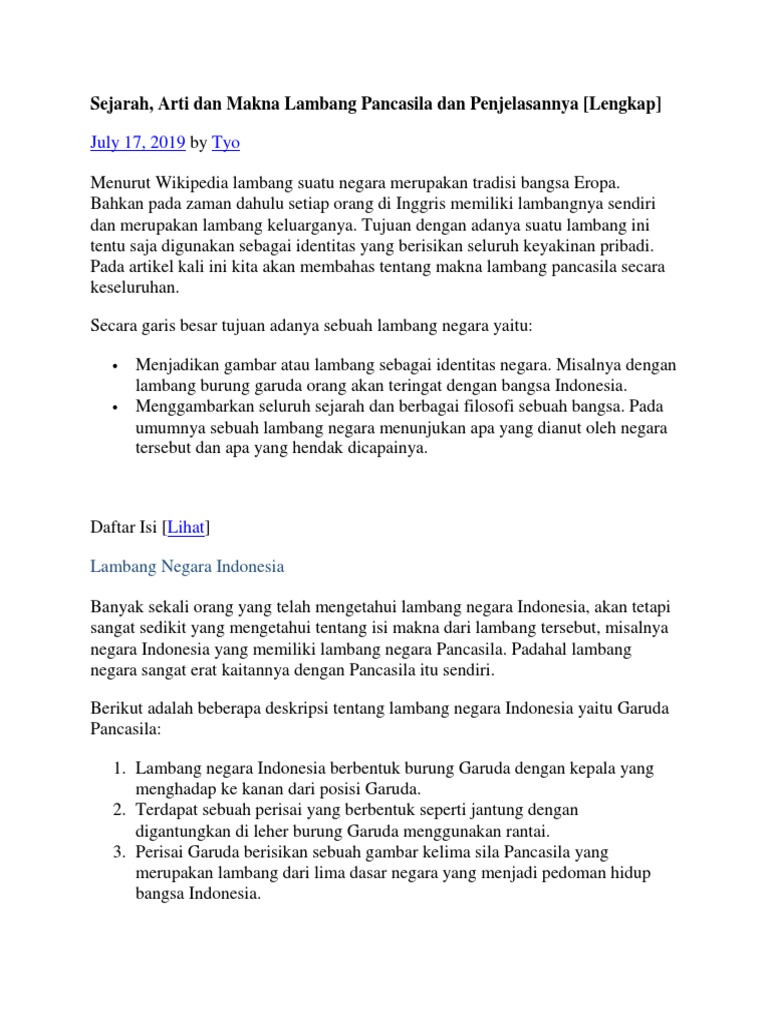 Mengenal Sejarah Lengkap Pancasila Pengertian Isi Dan Makna Lambang Burung Garuda