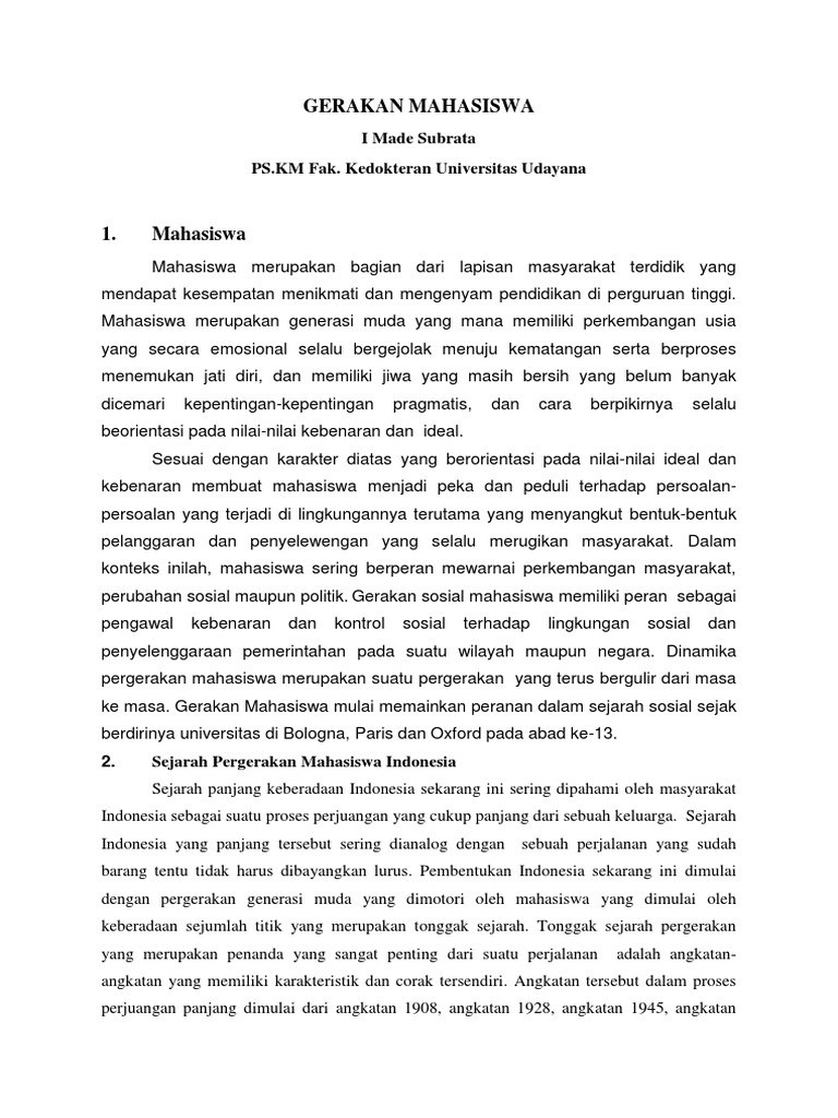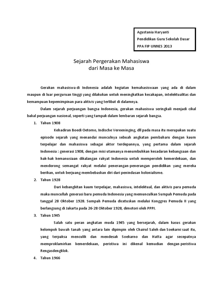 Sejarah Perkembangan Pergerakan Mahasiswa Sejarah Yaitu Heuristik Pengumpulan Sumber Verifikasi Pdf Document