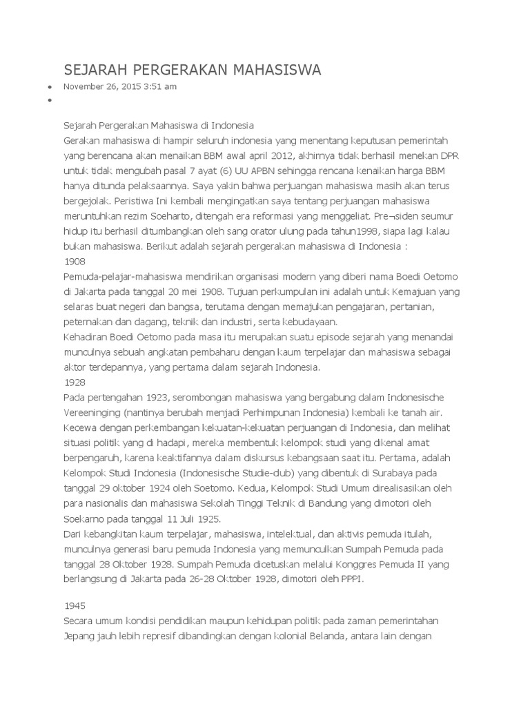Sejarah Singkat Pergerakan Mahasiswa Indonesia Dunia Karir Dan Mahasiswa