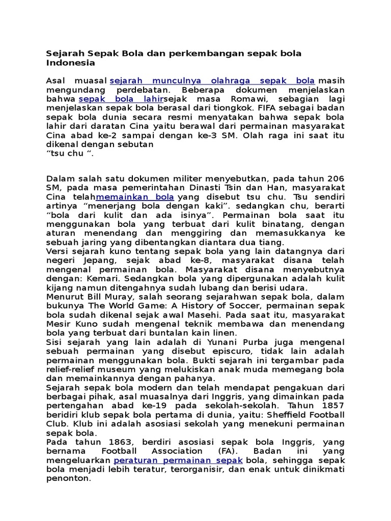 Sejarah Sepak Bola Di Dunia Indonesia Modern Kuno
