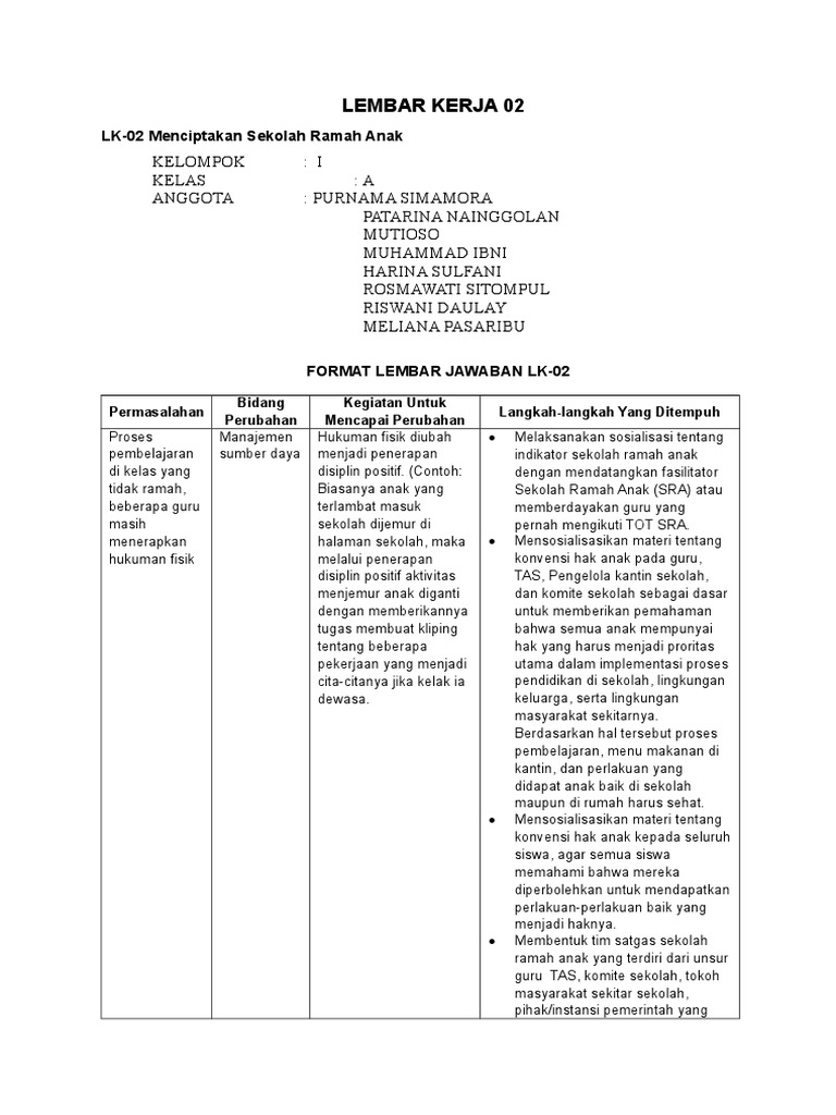 Contoh Matriks Rencana Tindak Lanjut Sekolah Ramah Anak Sra Guru Penyemangat