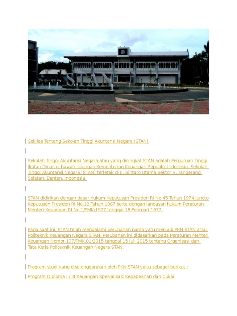 Profil Dan Informasi Lengkap Sekolah Tinggi Akuntansi Negara Pkn Stan