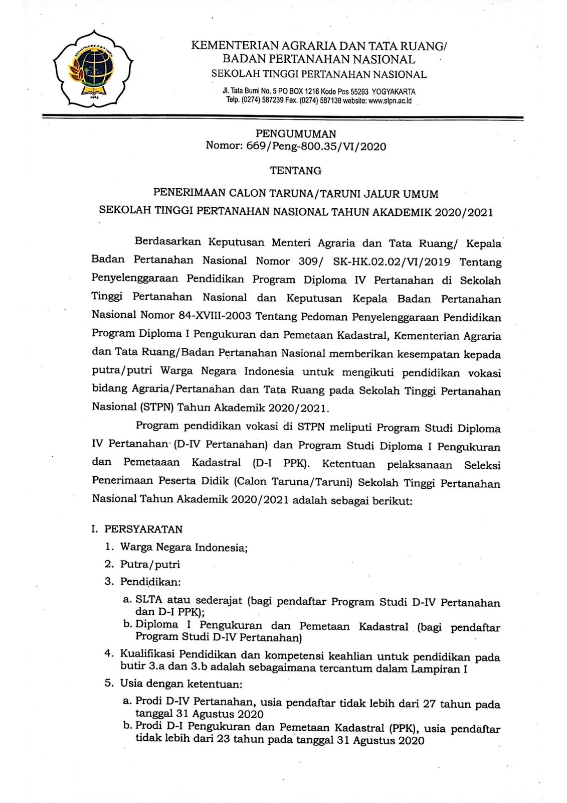 Stpn On Twitter Pengumuman Kelulusan Ujian Cat Seleksi Penerimaan Calon Taruna Jalur Umum Program Studi Diploma Iv Pertanahan Sekolah Tinggi Pertanahan Nasional Tahun Akademik 2020 2021 Untuk Info Lebih Detail Silahkan Download File