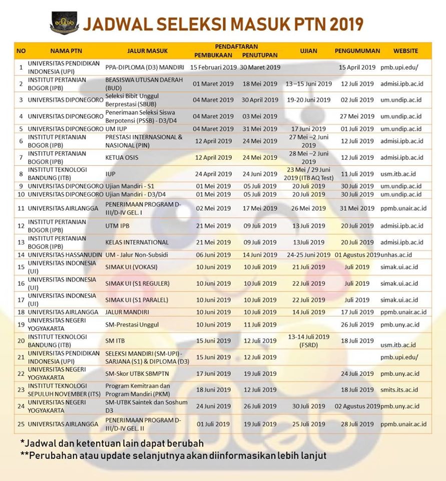 Jadwal Ujian Mandiri Ptn 2019 Download Share Les Privat Sbmptn